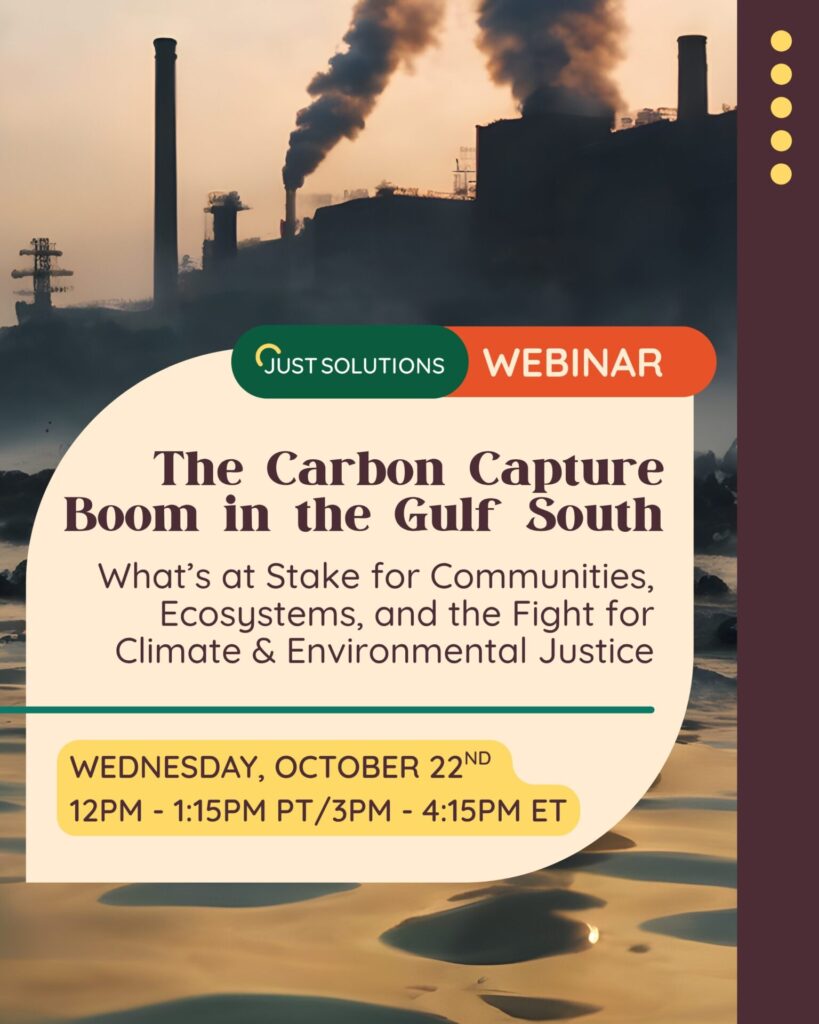 Join us for a 75-minute, in-depth webinar exploring the rapidly evolving Carbon Capture, Utilization, and Storage (CCUS) buildout in the Gulf South. With enhanced 45Q tax credits worth potentially hundreds of billions in federal dollars as the financing linchpin, a surge in carbon capture projects threatens to further expand and entrench the harmful footprint of fossil fuel-based chemical and industrial production and infrastructure in the region.